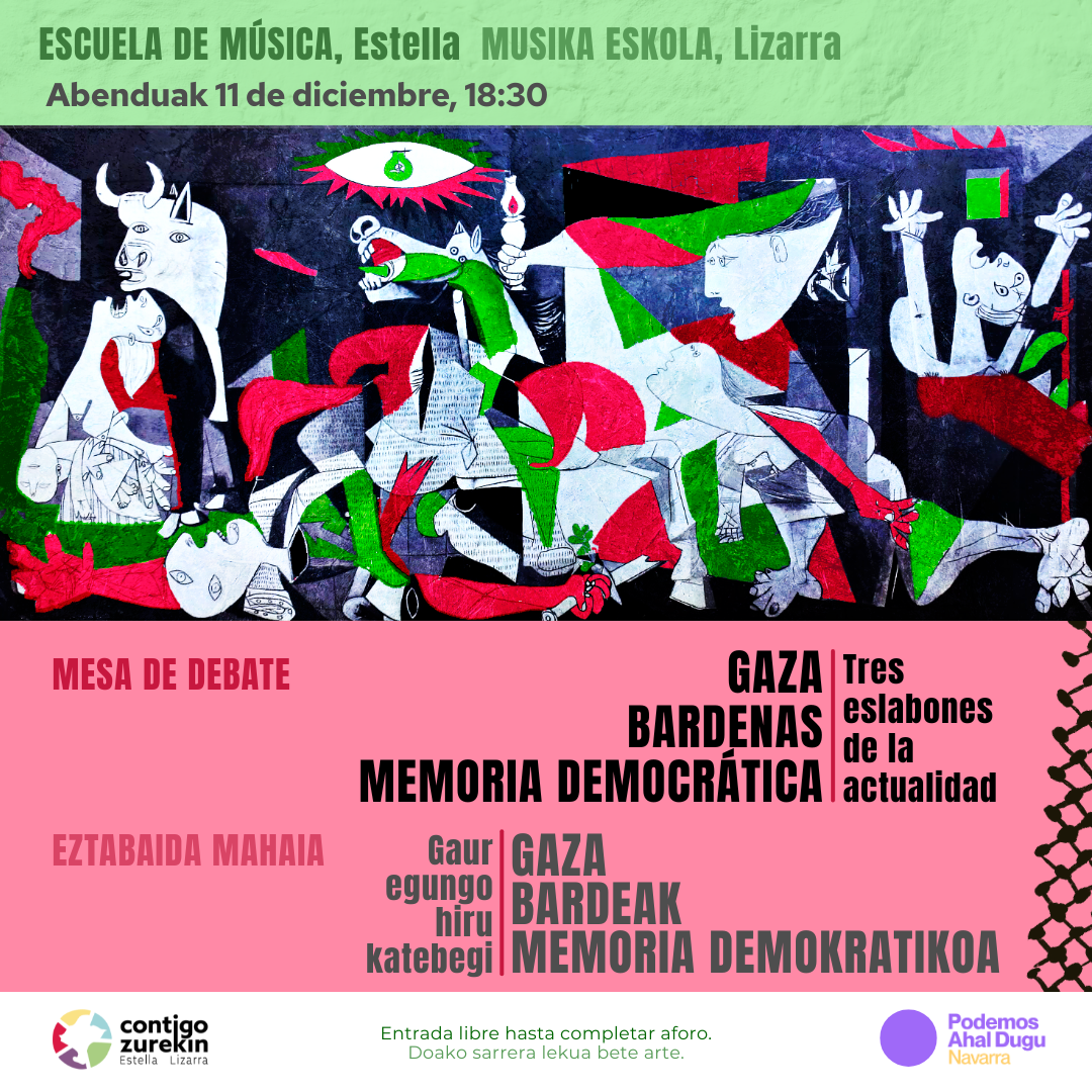 Podemos Navarra forma parte de la coalición Contigo Navarra – Zurekin Nafarroa, una alianza progresista de la que formamos parte cinco partidos políticos y decenas de personas independientes, comprometida con el cambio social y político en nuestra comunidad. Trabajamos para profundizar en los cambios necesarios, para un futuro más justo y equitativo para Navarra.